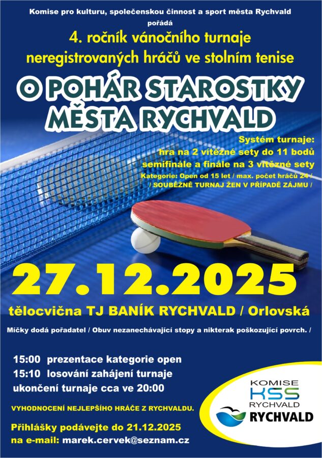 Zveme Vás na turnaj ve stolním tenise o pohár starostky města...