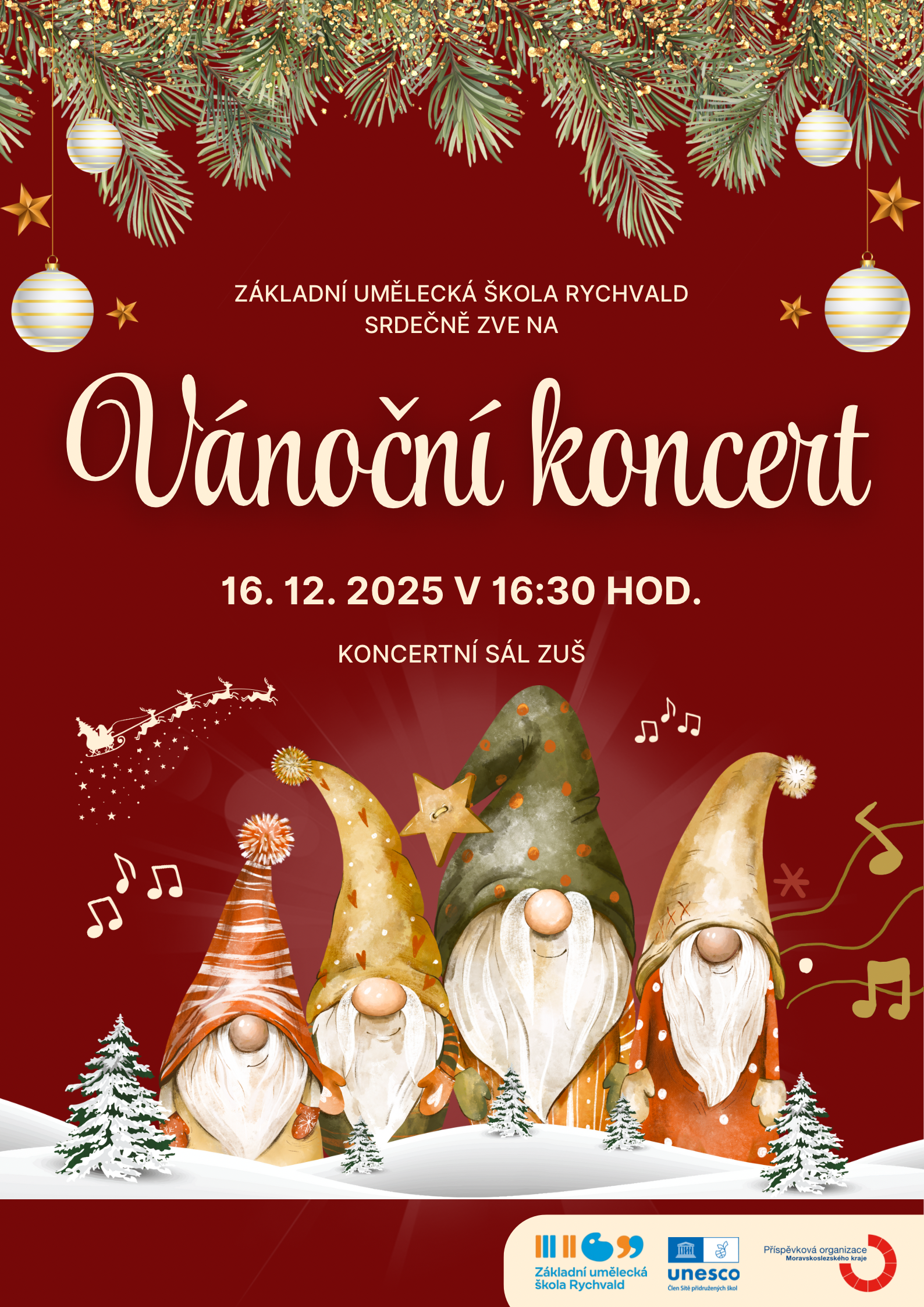 Základní umělecká škola Vás srdečně zve na Vánoční koncert, který se bude konat 16.12. 2025 od 16:30 hodin v koncertním sále ZUŠ.